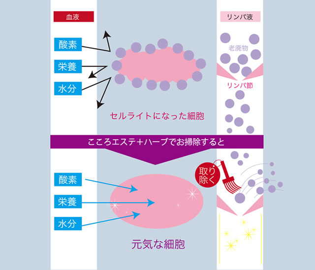 →エネルギーの強い魔法の肌質別エッセンスでマッサージ→老廃物の出口の鎖骨や全体のリンパポンパージュ